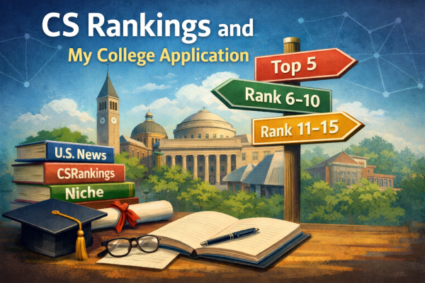 In the 2025–2026 application season, I was fortunate to be admitted to one undergraduate CS program ranked in the top 5, three ranked 6-10, and two ranked 11-15 in the 2026 U.S. News undergraduate computer science rankings. I will be visiting colleges with my family over spring break and deciding where to commit before the May 1st, 2026 deadline. In the meantime, I was also placed on a few waitlists at top CS programs, so part of the process is still continuing.