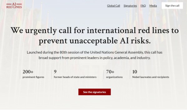 On September 22, 2025, the UN General Assembly hosted an extraordinary plea as more than 200 global leaders, scientists, Nobel laureates, and AI experts called for binding international safeguards to prevent the dangerous use of artificial intelligence. The plea is centered on setting “red lines” — clear boundaries that AI must not cross. (Source: NBC News). The open letter urges policymakers to enact the accord by the end of 2026, given the rapid progress of AI capabilities.